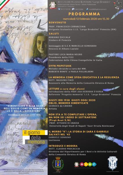 Con il Patrocinio dell'Amministrazione della Città di Pomezia, Il MIUR - Ministero dell'Istruzione, dell'Università e della Ricerca, Comunità Ebraica di Roma